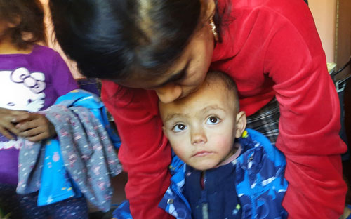 Dem Kind ist seine kurz Geschichte in die Augen geschrieben. Kleiderverteilung in Adrian. [...]