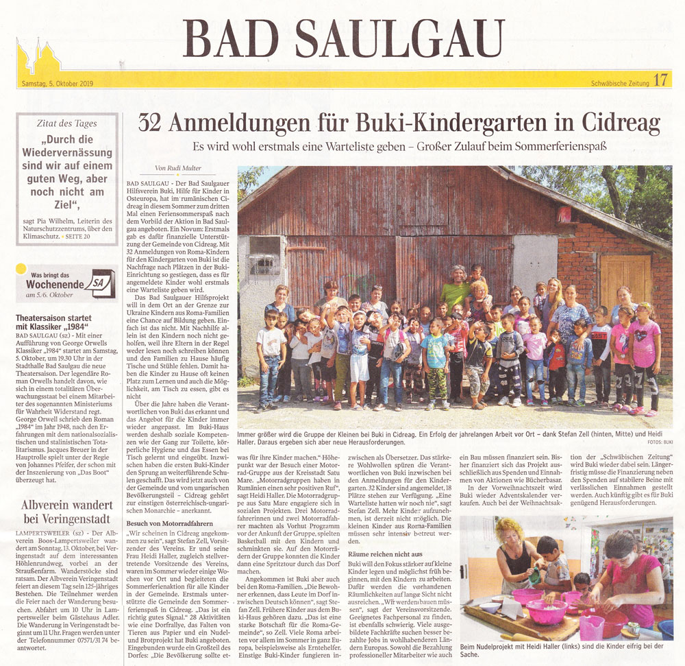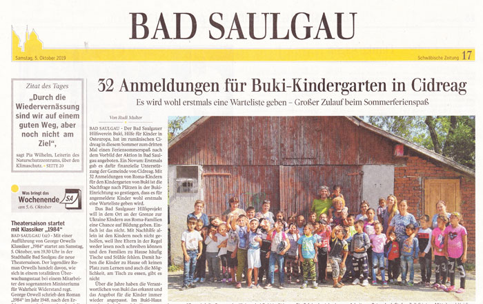 Von Stefan Zell|2019-10-05T14:12:35+00:005. Oktober 2019|BuKi in den Medien|Kommentare deaktiviert für Bericht in der Schwäbischen Zeitung zum BuKi-Sommer 2019
