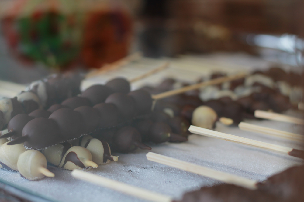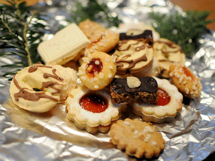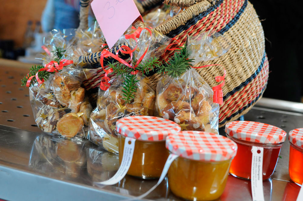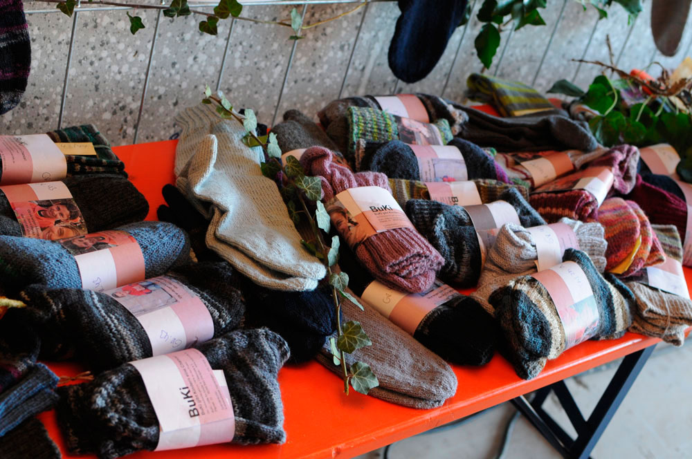 Neben den vielen liebevoll eingericheten Ständen bietet BuKi: Handgestrickte Socken und gespendetes Weihnachtsgebäck