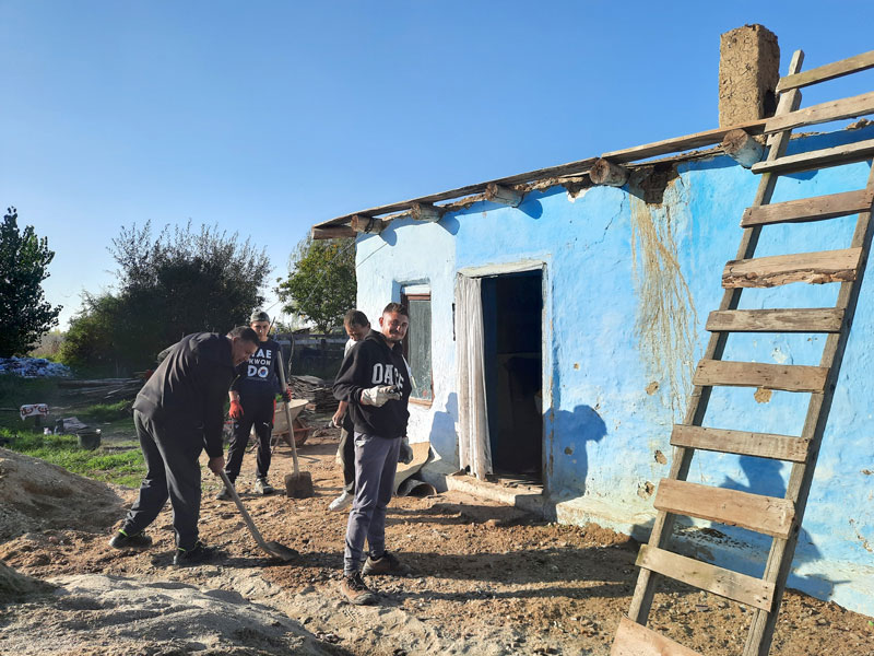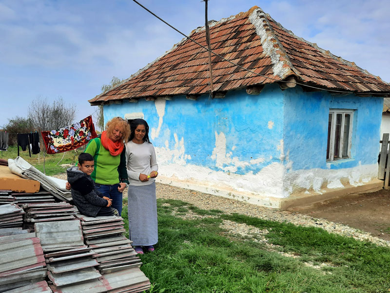Ference, ein Verwandter von Lydia, ist derzeit dabei, die Hütte zu stabilisieren. Beim Umbau hilft ihr ältester Sohn mit. Wir hoffen, dass Dach und Decke fertig sind, bevor es in Cidreag eisig kalt wird.