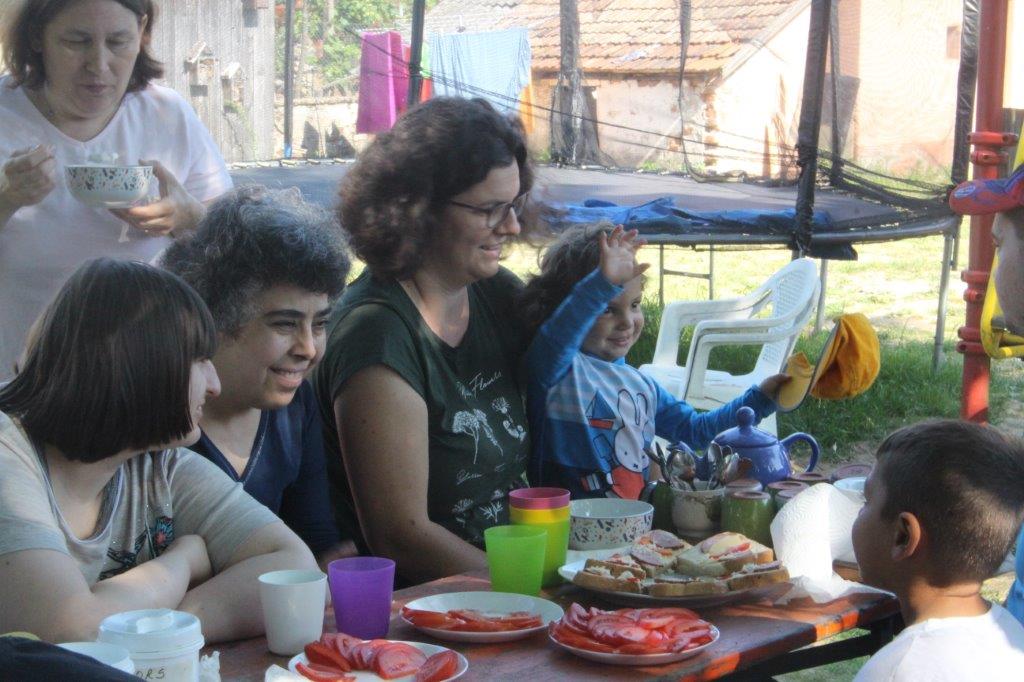 Nun haben wir letzte Woche einen besonderen Besuch im BuKi-Haus empfangen dürfen. Insgesamt 13 Gäste des Mosolyház füllten unseren Hof. Nach einem gemeinsamen Frühstück wurde viel geredet und die Mitarbeiterinnen sowie die Kinder aus Vandas Gruppe haben die Besucher kennengelernt. Zum Abschluss sind alle gemeinsam in den Ovoda – unseren Kindergarten – gegangen. Dort durften wir Geschichten lauschen und gemeinsam Spiele spielen.