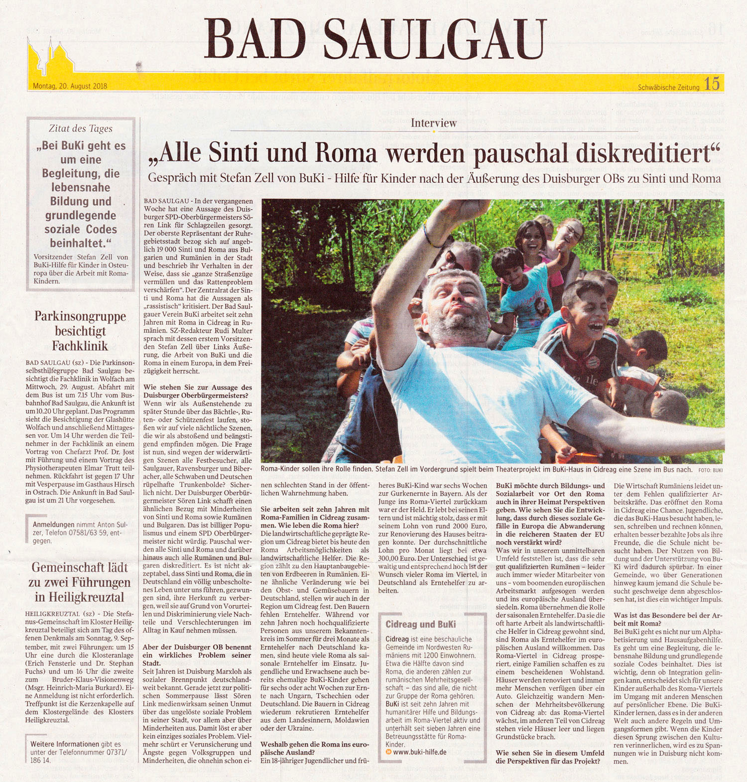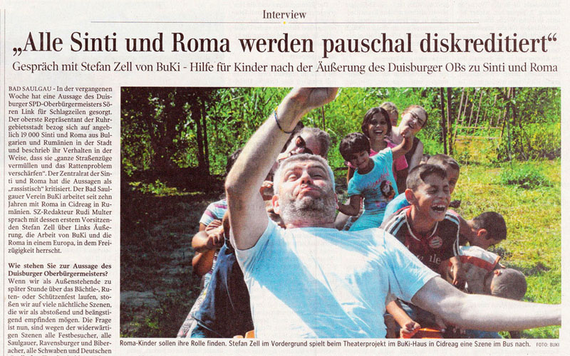 Interview in der Schwäbsichen Zeitung mit Stefan Zell, Vorsitzendem von BuKi-Hilfe für Kinder in Osteuropa e.V., zu den Äußerungen des Duisburger OB Sören Link zu Sinti und Roma in seiner Stadt.