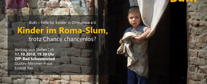 Liebe Freunde von BuKi, wir möchten Euch herzlich an unseren BuKi-Vortrag in Bad Schussenried erinnern und freuen uns auf Euer Kommen! 17.10.2018, 19.30 Uhr ZfP-Bad Schussenried Gustav-Mesmer-Haus (ZfP steht für Zentrum für Psychiatrie. Wer von auswärts kommt, fährt nach Bad Schussenried rein, und den Schildern zur ZfP folgen oder einfach fragen.) Wir sind nun seit 10 Jahren in Cidreag aktiv und 7 Jahre davon betreuen wir Roma-Kinder im BuKi-Haus. Der Vortrag bietet einen Blick auf unsere Arbeit in den vergangenen Jahren. Gleichzeitig werden wir Ihnen auch mitteilen wie der Stand, um die Kündigung unseres BuKi-Hauses ist. Beste Grüße Heidi und Stefan