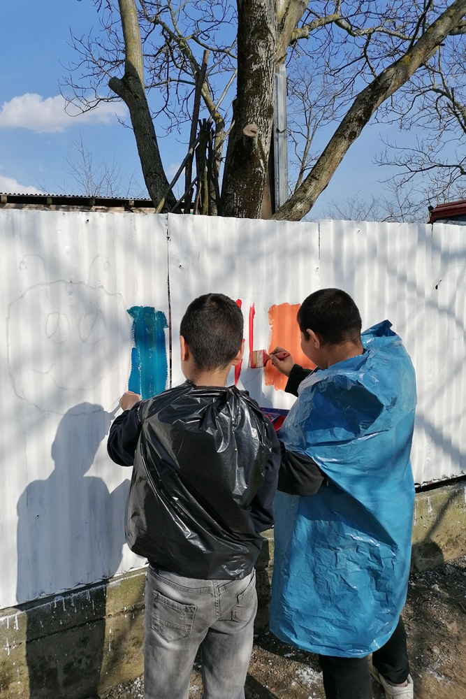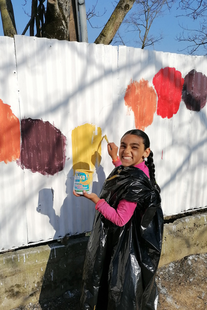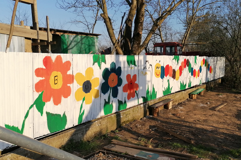 Nun kam ein frischer Wind auf das BuKi-Gelände, denn unsere Freiwilligen haben mit einigen Kindern den Zaun bemalt. Nachdem der alte Lack abgekratzt und der Zaun neu grundiert wurde, haben sie mit einigen Kindern den Zaun gestaltet. Nun schmücken Blumen mit den Buchstaben „BuKi“ und eine lange Raupe den weißen Hintergrund. Die Kinder werden nun noch ihre Namen in die Raupe schreiben.
