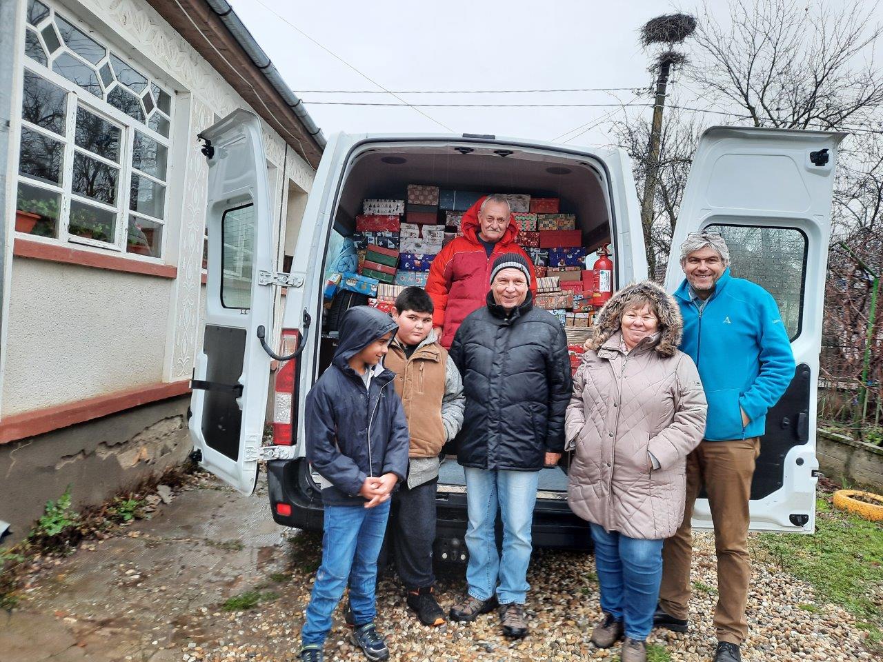 Monika, Peter, Rundi und Klaus – vier Vertreter der AWO Fridolfing haben heute mit einem Transporter das BuKi-Haus besucht. Mit im Fahrzeug waren 50 Weihnachtspäckchen für unsere BuKi-Kinder, warme Winterkleidung und eine Geldspende.