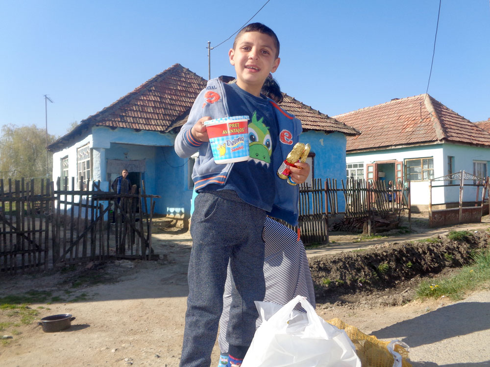 Am Samstag vor Ostern fand die nächste Lebensmittelverteilung statt: Neben Kartoffeln, Brot und Margarine gab es für die Kinder Schokoladehasen. Das hat sie natürlich rießig gefreut. BuKi verfügt in Cidreag über kein Auto, das spielte aber keine Rolle, denn auch auf einem Pferdefuhrwerk lassen sich die Lebensmittel hervorragend verteilen.